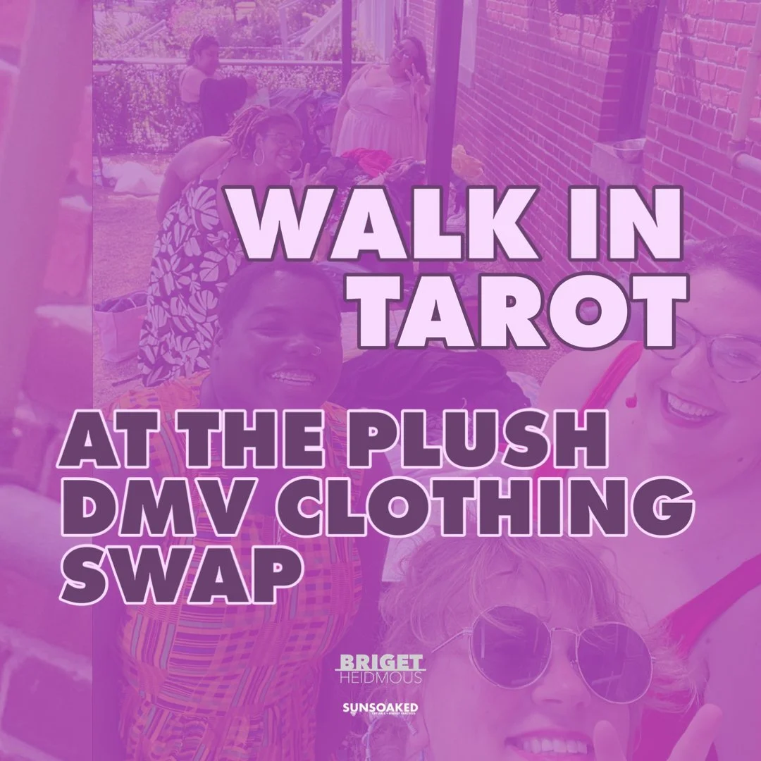 I will be offering 1:1 SUNSOAKED Tarot readings at the Plush DMV Spring Clothing Swap at Femme Fatale DC.